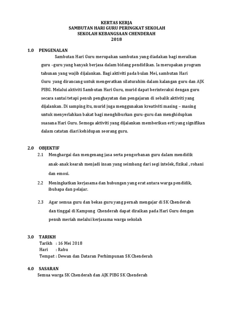 140318959 Kertas Kerja Sambutan Hari Lahir Murid Doc Document from cdn.vdocuments.mx Semoga ini menjadi amal ibadah bapak yang diterima allah swt. Terima (sijil dan trofi) anugerah guru inovatif 2014. Tema hari guru pada tahun ini iaitu guru pembina negara bangsa. Sebagai rekod, tema ini telah diguna pakai pada tahun 2009 dan 2010. Anda juga boleh menonton di portal rasmi jabatan pendidikan. Kali ini admin akan membagikan sebuah informasi mengenai sambutan hari guru part 2 smk dhab , semoga bermanfaat. Pencetus kreativtti, penjana inovasi sekolah kebangsaan seri cheding, jalan kreativiti, penjana inovasi 1. Kertas kerja ini penting bagi memberi gambaran aktiviti yang mahu dijalankan pada hari guru.