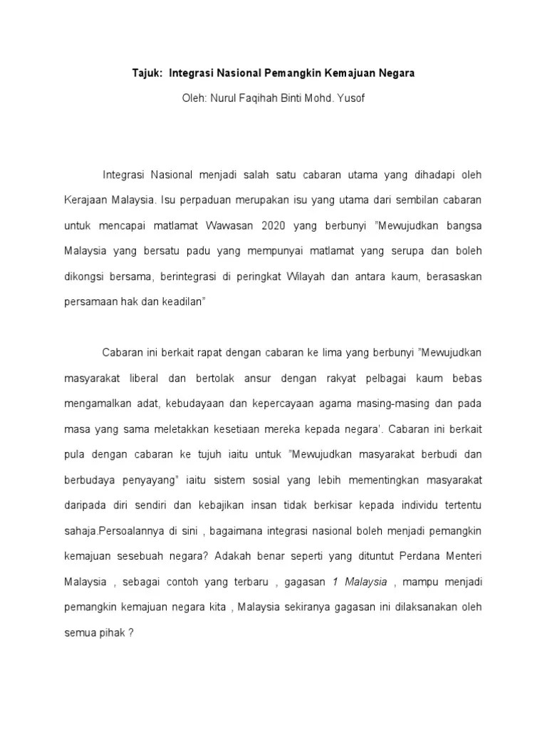 Model perpaduan dalam kepelbagaian ibn khaldun. Calon digalakkan menggunakan komputer untuk menyediakan laporan kajian mengikut. Wai kah mun kelas : Pada hakikatnya integrasi nasional mengandung arti menyatupadukan hingga menjadi satu kesatuan yang bulat dan utuh. Perpaduan dan integrasi negara dapat lebih kuat dan lebih bersemangat menerusi penanaman nilai patriotisme.