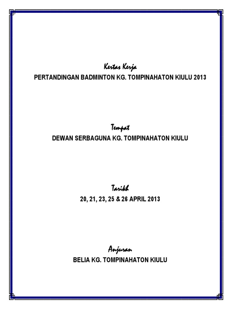 Related : Kertas Kerja Pertandingan Badminton : Kertas Kerja Kejohanan Badminton / Maybe you would like to learn more about one of these?.
