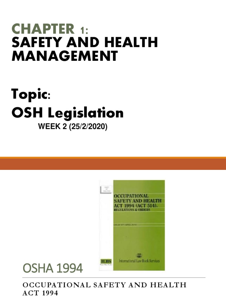 Related : Occupational Safety And Health Act 1994 / Occupational Safety And Health Osh Act 1994 Is A Chegg Com / The principle is to prevent and protect the workers against hazards and its risks in connection with their activities at work..