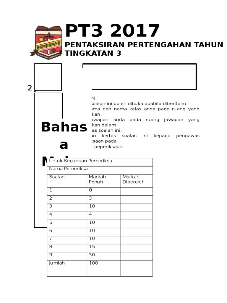 Soalan peperiksaan percubaan / nota. Koleksi soalan percubaan pt3 2018 + jawapan (seluruh negeri). Ini kerana peperiksaan pt3 adalah satu peperiksaan yang masih baru lagi formatnya. Unlike other tips provider, our tips will be comprehensive with notes too!!. Calon wajib menduduki semua instrumen pentaksiran bagi mata pelajaran yang didaftar. Di pihak mypt3 ada beberapa subjek yang boleh dikongsikan sedikit sebanyak kepada anda semua menjelang. 2020 jadual waktu (tuition / holiday programme) @ petaling jaya 2020 mail order tips (upsr/pt3/spm) 2020 pt3 exam tips 2020 seminar upsr pt3 spm @ universiti malaya. Adakah anda calon pt3 tahun 2018? Please copy and paste this embed script to where you want to embed. Soalan ramalan bahasa inggeris pt3 2019. It is compatible with all android devices (required android 4.0+) and can also be able to install on pc. Soalan trial pt3 dengan skema jawapan. Calon wajib menduduki semua instrumen pentaksiran bagi mata pelajaran yang didaftar.